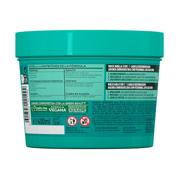 Extiende sobre el cabello húmedo, deja actuar durante 3 minutos y enjuaga con abundante agua para lograr una hidratación profunda sin dejar residuos.