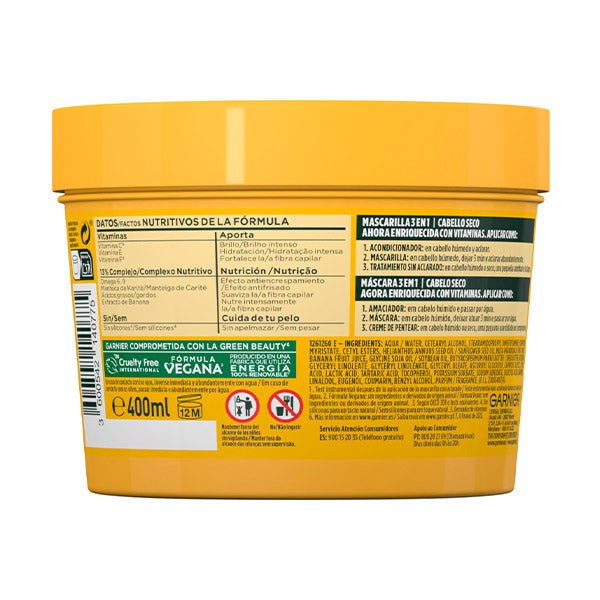Experimenta Hair Food Banana: la energía nutritiva de la Banana, una superfruta que aporta hidratación intensa al cabello seco. Con extracto de plátano proveniente de Costa Rica, este Hair Food ofrece una dosis de nutrición profunda ideal para el cabello con mayores exigencias. Su textura cremosa, delicada y agradable envuelve la melena, aportando suavidad e hidratación sin dejar sensación grasa.