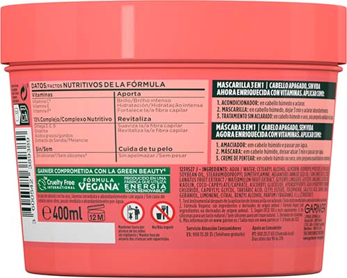 Este envase está pensado para ser reciclado, ¡no lo tires! Depósitalo vacío en el contenedor amarillo. Desde 1989, Garnier mantiene su compromiso con un mundo libre de test en animales. No ingerir.