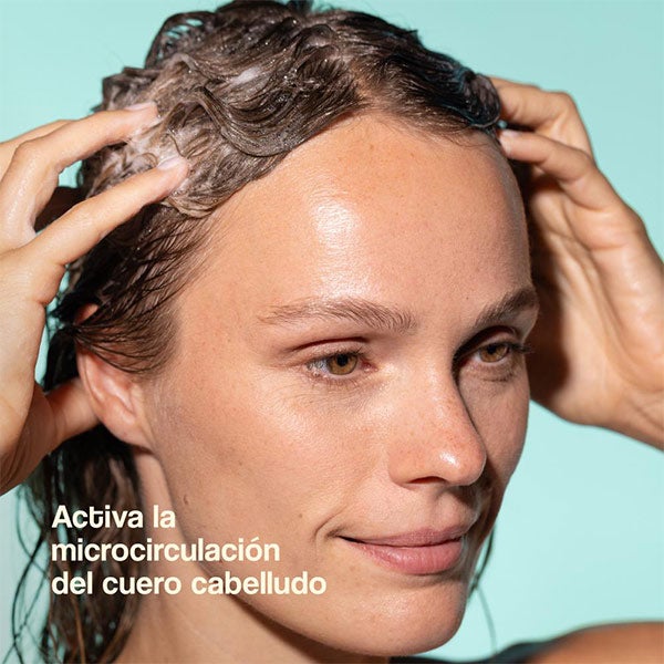 Este champú anticaída libre de sulfatos y siliconas elimina impurezas y estimula el ciclo capilar. ¿De qué forma? Gracias a sus activos fortalecedores del folículo y restauradores del ritmo de crecimiento. Emplea una tecnología natural de encapsulación inteligente que permite que los ingredientes (Turmeric Peptide y Scutellaria Baicalensis) lleguen intactos al folículo y se liberen de manera dirigida, logrando una eficacia hasta 12 veces superior frente a otros tratamientos anticaída sin este sistema.