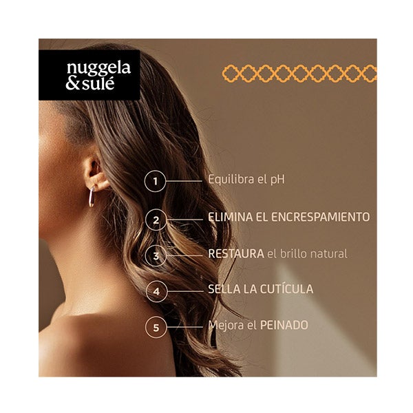 Con Hair Mist de Nuggela & Sulé, es posible combatir estos efectos, ya que tras cada lavado el cabello recibe una fina niebla de activos que sellan la cutícula, minimizan el encrespamiento y devuelven la luminosidad original, logrando un aspecto saludable y radiante.
