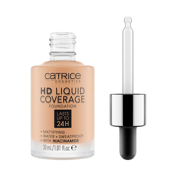 Segunda Piel. La base de maquillaje HD Liquid Coverage tiene una gran cobertura pero deja un aspecto muy natural, y es extremadamente ligera - como si fuera una segunda piel. Proporciona un cutis terso y es de extremada larga duración. Cubre las imperfecciones hasta 24 horas y matifica la piel. Su acabado de gran definición consigue una piel preciosa que está lista para la cámara en cualquier momento.