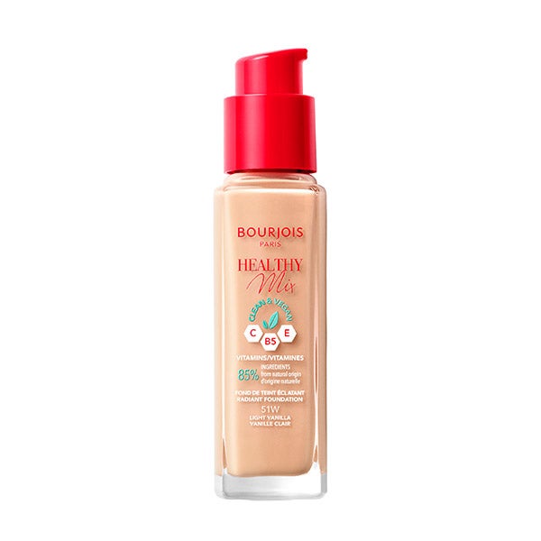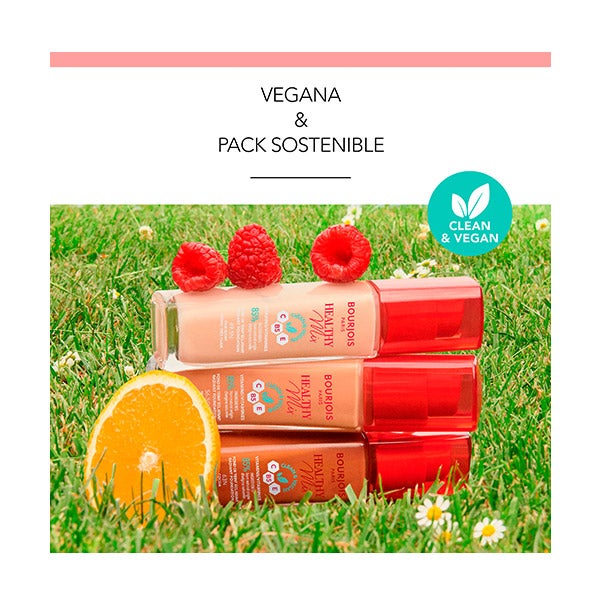 La emblemática base de maquillaje Bourjois Healthy Mix Clean Foundation llega con una fórmula renovada y completamente vegana. Elaborada con un 85% de ingredientes de procedencia natural, incorpora un complejo antioxidante con Vitaminas C, E y B5, que hidrata y contribuye al cuidado de la piel. Aporta un acabado luminoso y aspecto saludable de manera instantánea. Además, se presenta en un nuevo envase fabricado con materiales reciclados. ¡Descubre ya su efecto ideal en tu piel!