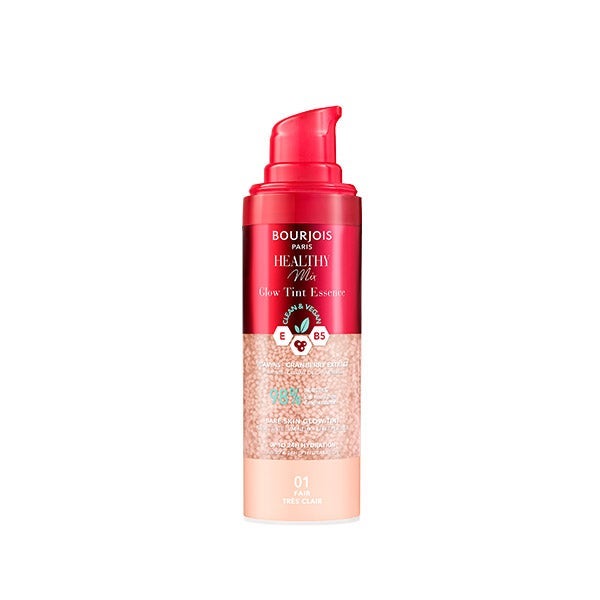 Devuelve la vitalidad y el resplandor natural de tu piel con Bourjois Healthy Mix Glow Tint Essence. Esta innovadora base fusiona la tecnología de pigmentos encapsulados con un cóctel de arándano enriquecido con vitaminas para despertar la luminosidad del rostro y realzar su aspecto radiante. Su textura ligera ofrece una cobertura delicada que suaviza los poros, atenúa el enrojecimiento y deja un velo de luz sutil, logrando un acabado fresco y luminoso.