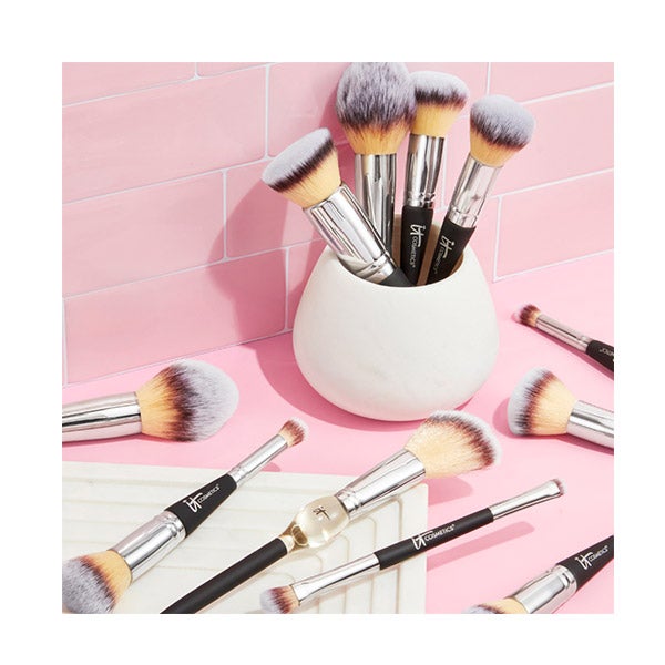 ¿QUÉ ES? IT COSMETICS presenta la Heavenly Luxe Brocha doble #7, ideal para aplicar base y corrector con total facilidad.