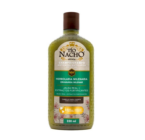 PREVIENE EL QUEBRAMIENTO del cabello con TIO NACHO HERBOLARIA MILENARIA. Su exclusiva mezcla de JALEA REAL, extractos de Germen de Trigo, Aloe Vera y Soja refuerza la fibra capilar y la renueva desde la raíz hasta las puntas, proporcionándole suavidad y aspecto sedoso.