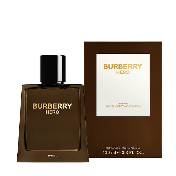Hero Parfum es la nueva creación aromática de Burberry diseñada para el hombre. Profundo y enérgico, su fragancia descansa sobre una base cálida de aceites de cedro. En las notas iniciales, el toque de madera de Amyris y el aceite de Cipriol realzan la composición, otorgándole un acabado maderoso intenso. Se presenta en un frasco de vidrio facetado adornado con el logotipo de Burberry. Una interpretación poderosa e intensa: Burberry Hero Parfum.