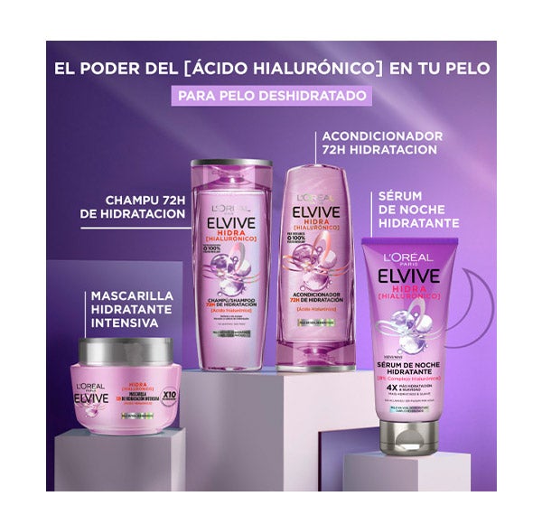 El Serum Hidratante de noche de Elvive hidra hialuronico presenta una innovadora fórmula con un 8% de complejo hialurónico, diseñada para aportar una hidratación 4 veces más intensa al cabello durante la noche, logrando una melena visiblemente más suave y radiante al despertar.