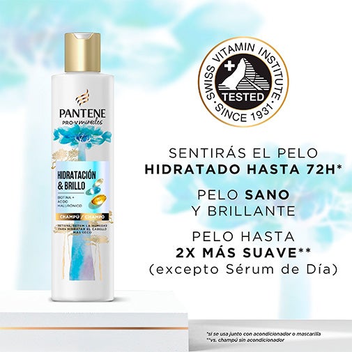 ¿Quieres disfrutar de un cabello radiante cada día? El champú Pantene Hidratación Y Brillo está formulado con nutrientes que combaten el encrespamiento y dejan tu melena con un aspecto luminoso e hidratado. Su exclusiva fórmula Pro-V, con biotina y ácido hialurónico, ayuda a retener la humedad y a proporcionar una hidratación intensa al cabello seco y sin vida.