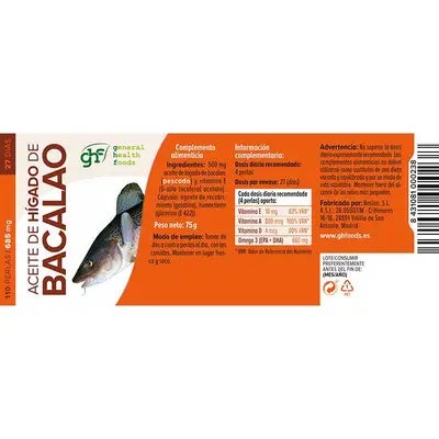 Hígado de bacalao 500 mg 110 perlas diseñado para cubrir las necesidades del día a día.