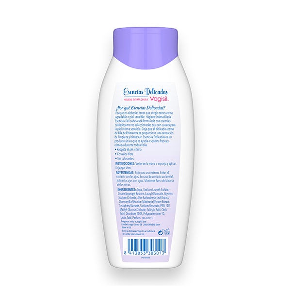 El gel íntimo Esencias Delicadas de Vagisil ha sido creado con esencias seleccionadas con esmero para cuidar la piel íntima más sensible con la máxima suavidad. Su delicado perfume de Lila de Primavera aporta una agradable sensación de pureza y confort.