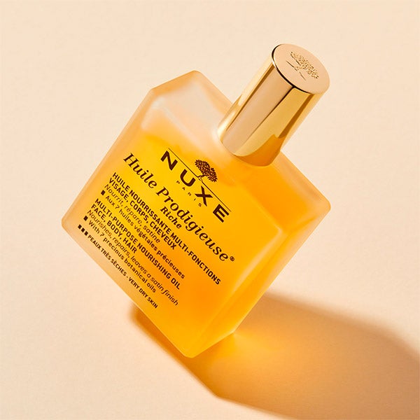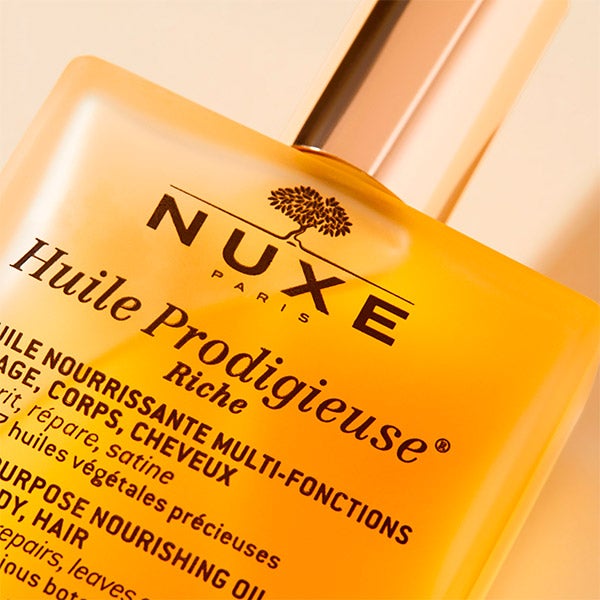 - Enriquecido con Aceite de Tsubaki de alto poder nutritivo, Huile Prodigieuse® Riche hidrata profundamente la piel, dejando rostro, cuerpo y cabello restaurados y con una textura más suave.