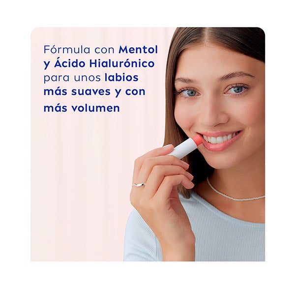 Asimismo, su fórmula acentúa el tono natural de los labios y brinda una sensación ligera y refrescante gracias al Mentol añadido. Compatibilidad cutánea evaluada dermatológicamente.