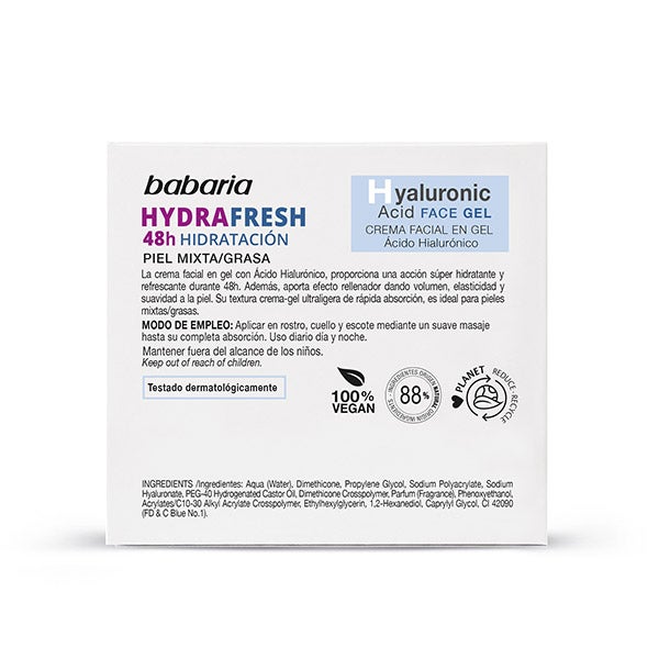 La crema en gel con Ácido Hialurónico ofrece una intensa acción hidratante y refrescante que se prolonga hasta 48 horas.