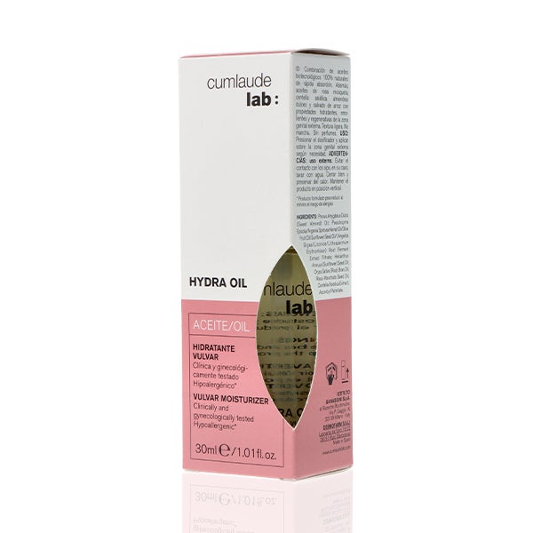 Hydra Oil se elabora a partir de una sinergia de aceites biotecnológicos 100% naturales de absorción rápida. Incluye aceites de rosa mosqueta, centella asiática, almendras dulces y salvado de arroz con efectos hidratantes, emolientes y regeneradores sobre la zona genital externa. Es un aceite de textura ligera, no deja residuos y está libre de perfumes.