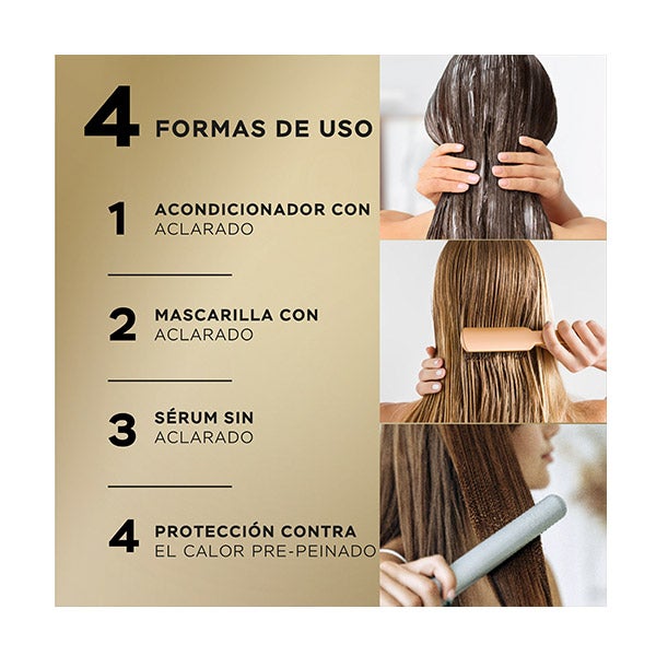 CABELLO HIDRATADO Y DE ASPECTO SALUDABLE: Este tratamiento capilar se absorbe al momento, dejando el cabello sedoso, luminoso y visiblemente renovado durante todo el día.