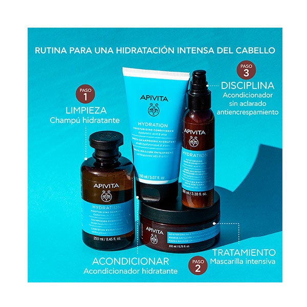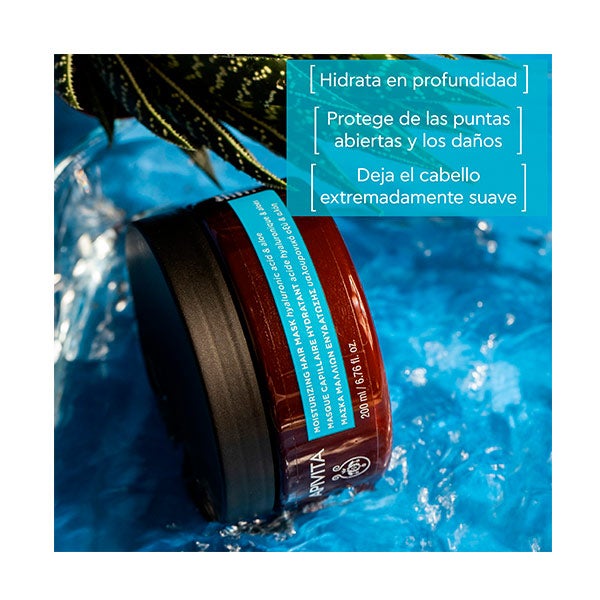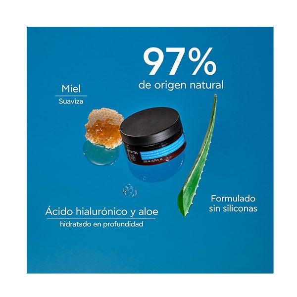 Aporta una hidratación profunda e intensa, restaurando el nivel de agua dentro del cabello gracias al ácido hialurónico y al aloe.