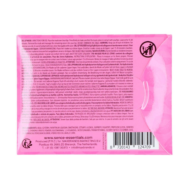 Mascarilla de hidrogel hidratante diseñada para nutrir los labios, elaborada con colágeno y extracto de pepino.