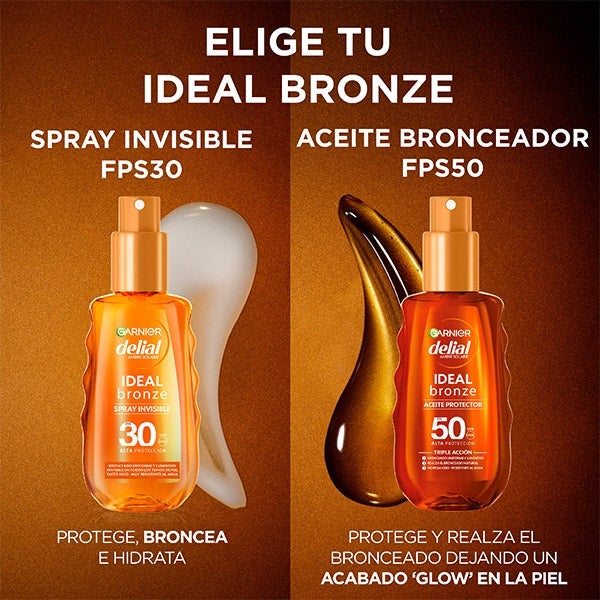 Descubre un bronceado perfecto junto a una protección elevada FPS 50 con Garnier Delial Aceite Protector. Su innovador VITA-MELANIN COMPLEX favorece un tono dorado homogéneo y radiante. Asimismo, brinda protección antioxidante, resistencia al agua y una textura ligera que garantiza una defensa solar avanzada FPS 50. Potencia el color natural de tu piel con la línea Ideal Bronze.