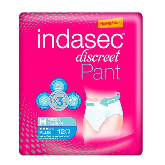 En resumen, Indasec Discreet Pant Plus 12 unidades es una opción superior para quienes buscan protección avanzada contra la incontinencia moderada y abundante. Con su capacidad de absorción mejorada, ajuste anatómico, y tecnología de neutralización de olores, proporciona una experiencia cómoda, discreta y segura durante todo el día o la noche. Ideal para quienes necesitan mayor confianza y seguridad en su día a día.