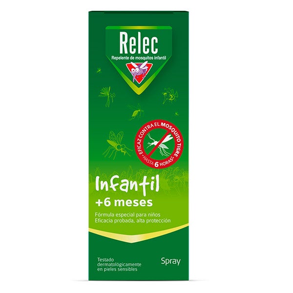 Relec Infantil +6 meses es un spray antimosquitos diseñado especialmente para proteger a bebés y niños desde los 6 meses de edad.