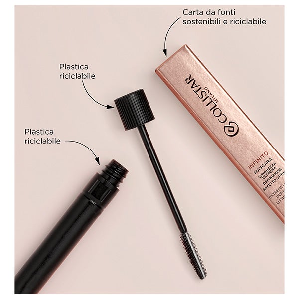 Infinito Mascara está disponible en dos tonos de color profundo y garantiza unas pestañas luminosas y brillantes, sin grumos, resistentes al movimiento y de larga duración.