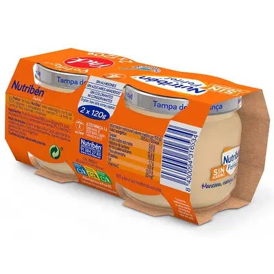 Nutribén Potitos® Manzana, naranja, plátano y pera pack son una opción saludable y natural para introducir las frutas en la alimentación de tu bebé a partir de los 4 meses. Elaborados únicamente con frutas 100% naturales y enriquecidos con vitamina C, estos potitos ofrecen un sabor delicioso y una textura ligera que facilita que tu peque disfrute cada cucharada.