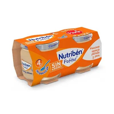 Nutribén Potitos® Manzana, naranja, plátano y pera pack son una forma práctica, segura y nutritiva de introducir frutas en la dieta de tu bebé, ayudándole a desarrollar hábitos alimentarios saludables desde sus primeros meses.
