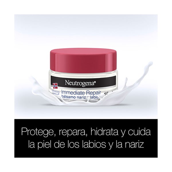 Neutrogena® Bálsamo Reparación Inmediata Nariz y Labios es un bálsamo reconfortante de absorción rápida que no deja película blanca ni sensación de pegajosidad.