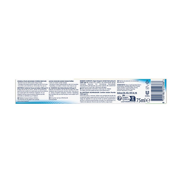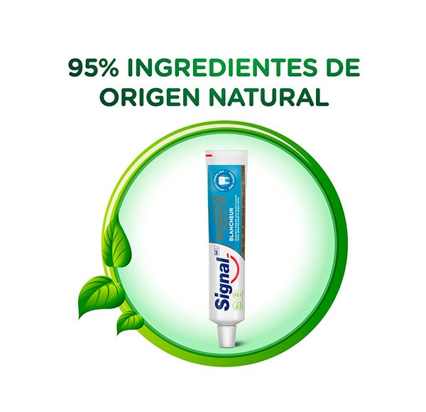La fórmula del dentífrico Signal Integral 8 Blanqueante está compuesta por un 95% de ingredientes de origen natural y, gracias a su textura suave enriquecida con extractos vegetales, proporciona una sensación de frescor prolongada.