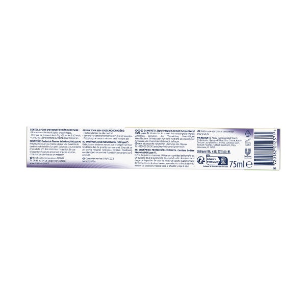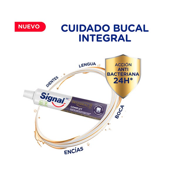 La fórmula del dentífrico Signal Integral 8 Protección Completa está compuesta en un 95% por ingredientes de origen natural. Su textura suave, enriquecida con extractos botánicos, proporciona una sensación de frescor prolongada y ayuda a generar una barrera antibacteriana que protege toda la cavidad bucal.