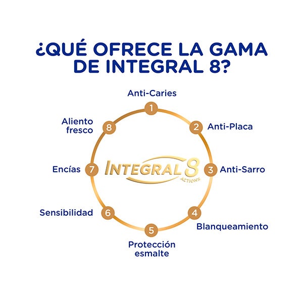 Con eficacia clínicamente comprobada, este dentífrico ofrece 8 beneficios: prevención de la caries, acción antiplaca, control del sarro, efecto blanqueador mejorado, protección del esmalte y las encías, cuidado frente a la sensibilidad dental y un aliento más fresco.