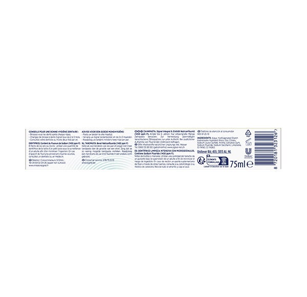 La pasta dental Signal Integral 8 Limpieza Intensiva incorpora microgránulos que eliminan la suciedad en profundidad y refrescan toda la cavidad bucal.