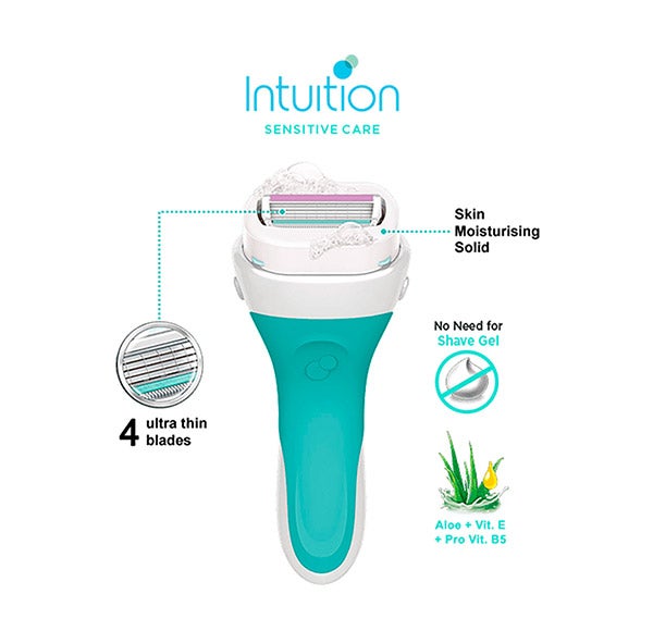 Se trata de una maquinilla femenina con 4 hojas de afeitar. Las hojas de Wilkinson Sword Intuition Sensitive Care incluyen almohadillas protectoras que contribuyen a reducir cortes e irritaciones, proporcionando una experiencia cómoda apta para cualquier tipo de piel.