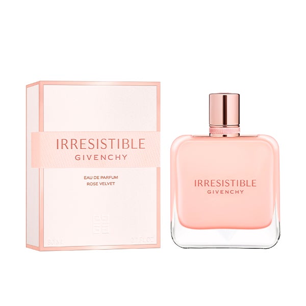 El envolvente Patchouli Blanco abraza a la suave rosa en esta nueva interpretación floral: Givenchy Irresistible Eau de Parfum Rose Velvet.