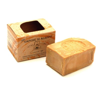 El jabón de Alepo es un jabón vegetal a base de aceites de oliva y laurel. Se elabora de forma artesanal desde hace más de 2000 años en la ciudad de Alepo, situada al norte de Siria. Este jabón se elabora sin colorantes, conservantes, perfumes ni productos químicos. Es un jabón completamente vegetal y biodegradable. Resulta útil para todo tipo de pieles, en especial para pieles sensibles y pieles con problemas de psoriasis, dermatitis, acné, eczemas, etc. Es antiséptico, antiinflamatorio, antiedad, antioxidante. Se puede utilizar como jabón para la higiene diaria de la piel de todo el cuerpo, como champú, como espuma de afeitado y para la limpieza de la ropa. Rico en Vitamina E. Su historia, ingredientes y métodos de producción hacen de él un jabón único en el mundo.