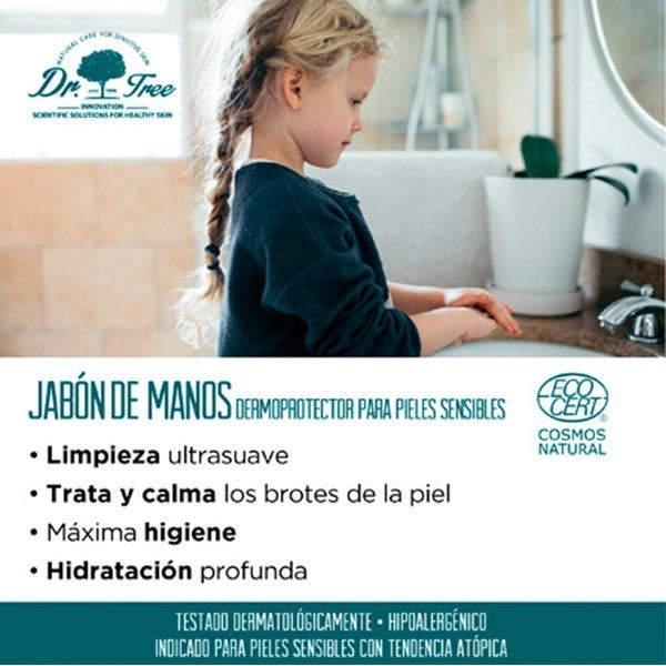 Jabón de manos dermoprotector indicado para pieles sensibles.