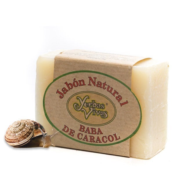 El jabón natural en pastilla de baba de caracol de Yervas Vivas se produce únicamente con aceites vegetales puros y extractos de plantas de aroma natural. La baba de caracol, protagonista en su fórmula, ayuda a regenerar la piel mientras le ofrece una combinación de vitaminas y proteínas que contribuyen a su nutrición e hidratación.