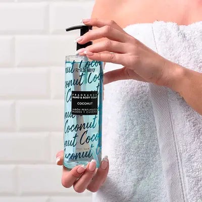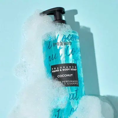 Jabón perfumado de coco para manos y cuerpo diseñado para cubrir las necesidades del día a día.