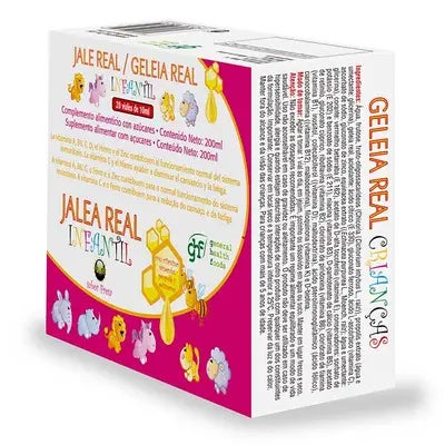Jalea real infantil con vitaminas, taurina, própolis y equinácea.