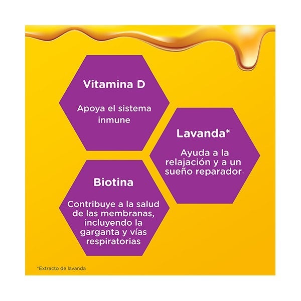 -COMPONENTES DE ORIGEN NATURAL: Contiene vitamina D, biotina, extracto de lavanda y miel pura para favorecer las defensas naturales.