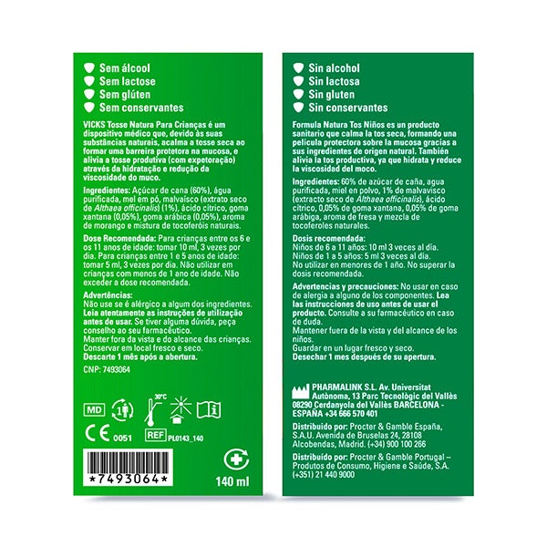 Su composición no incluye alcohol, gluten, conservantes ni lactosa, ofreciendo una opción segura para niños mayores de un año.