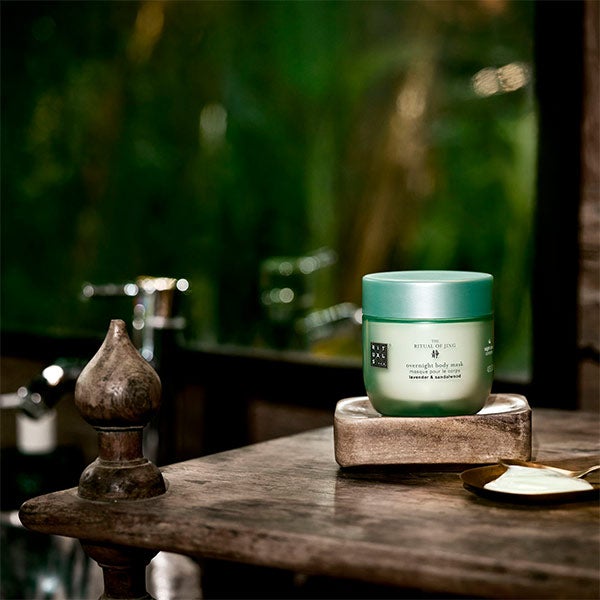 Disfruta de un descanso profundo con la mascarilla corporal nocturna The Ritual of Jing. Su textura en crema tipo gel incorpora un complejo Night Care que ayuda a regenerar, restaurar y nutrir la piel seca mientras duermes, devolviéndole suavidad y flexibilidad*. Enriquecida con notas calmantes de sándalo y lavanda.