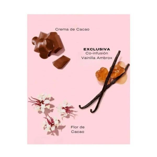 Disfruta la caricia de la crema de cacao y del refinado jazmín sambac, mientras la base de haba de cacao, vainilla-ambrox exclusiva, sándalo y cálido almizcle deja una estela profunda y envolvente.