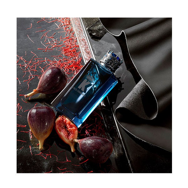 "K by Dolce&Gabbana Eau de Parfum Intense" es un perfume masculino intenso y lleno de carisma que entrelaza un cautivador acorde amaderado con matices de cuero, complementado por toques de Azafrán e Higo.