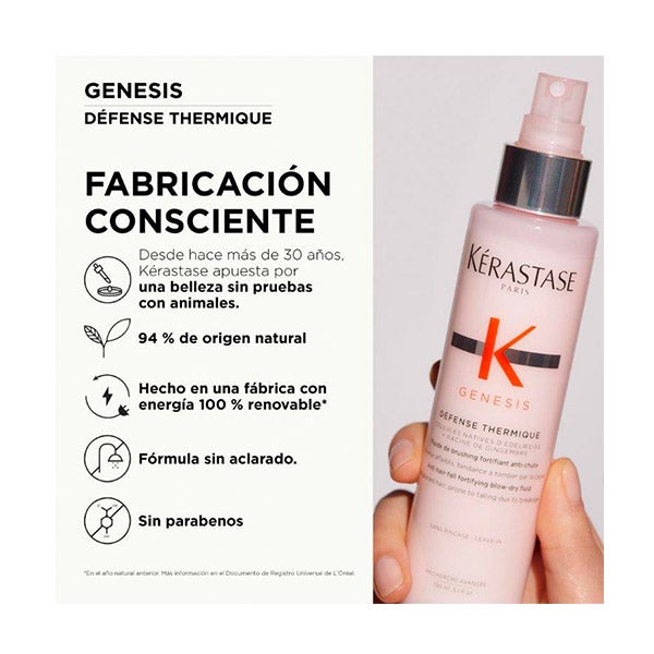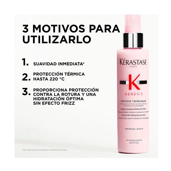 Fluido fortalecedor de peinado anti-caída por rotura y protector térmico.