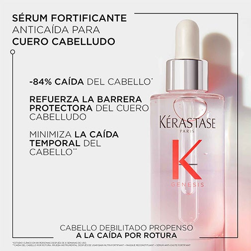 El Sérum Fortifiant Antichute Genesis de Kérastase ofrece una respuesta eficaz para el cabello frágil, con tendencia a quebrarse y desprenderse durante el cepillado.