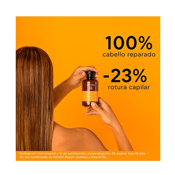*Evaluación instrumental y nivel de satisfacción, estudio de autoevaluación sobre 25 personas después de 28 días de uso de Keratin Repair champú y mascarilla.