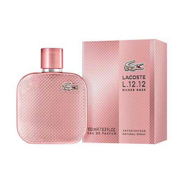 La fragancia femenina L.12.12 Silver Rose Eau de Parfum reinterpreta el emblemático polo Lacoste, transmitiendo una feminidad espontánea y segura de sí misma. La chispa cítrica de la mandarina verde se une al frescor de la menta, mientras las notas de musgo y el toque dulce de rosa crean una composición que irradia libertad y sofisticación. El frasco se distingue por su característico cocodrilo bordado.