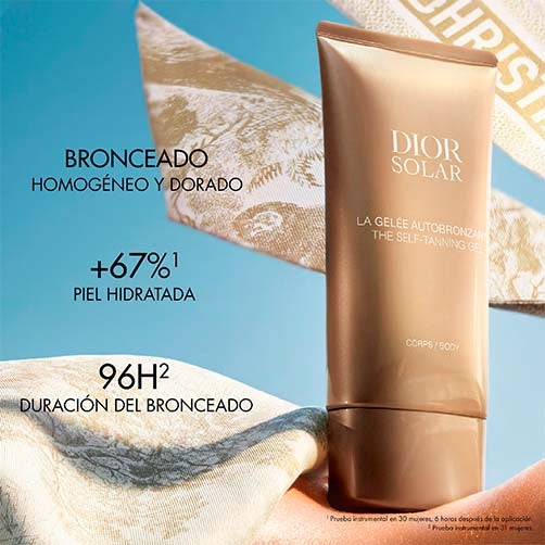 Extienda Dior Solar Gel Autobronceador Corporal sobre la piel limpia y seca, después de exfoliarla previamente. Masajee con movimientos circulares hasta su completa absorción. Lávese las manos tras aplicarlo y espere aproximadamente 3 minutos antes de vestirse.